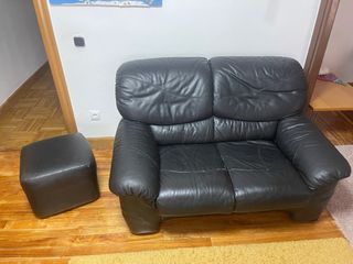 Sofá de dos plazas con un diseño moderno y elegante. Aporta un toque de distinción a cualquier salón. - Tapicería de piel. - Color negro.