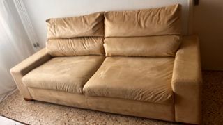 Sofa de tela color beige en perfecto estado. Se entrega cubierto con plástico protector. se vende por comprar otros nuevos - Dos plazas - Cómodo y elegante
