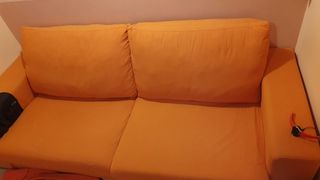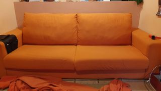 Se vende sofá de 2 plazas naranja, incluso 3 personas, algo juntitas