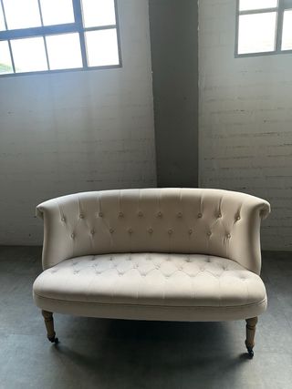 Sofá de dos plazas con un diseño clásico y elegante. - Tapicería de tela. - Acabado capitoné. - Estructura robusta.