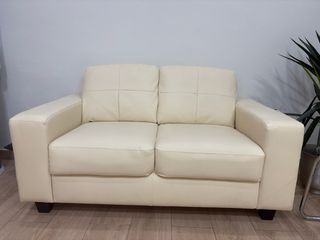 Sofá de dos plazas en un tono beige neutro. Su diseño clásico se adapta a cualquier espacio. - Tapicería de piel. - Color beige. A recoger(gibralgalia) no se usa.(se vende por mudanza el sofa esta muy bien practicamente nuevo)