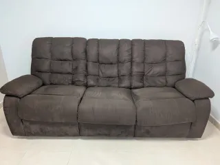 Sofá de tres plazas con dos asientos reclinables manualmente. Su diseño acolchado ofrece gran comodidad. No es desmontable - Tapicería suave. - Estructura robusta. - medidas 210 largo x 93 de fondo No se realiza envío, se recoge en domicilio