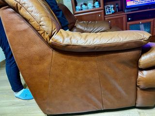 ESCUCHO OFERTA -Sofá de tres plazas. (1,90 ancho × 90 Fondo × 97 alto) -Dos sillones individuales (1,05 ancho × 90 fondo × 97 alto) De piel y estructura de madera maciza tallada, con cajones. HAY ZONAS QUE LA PIEL ESTA ROTA. EL COMPRADOR SE HACE CARGO DE TRANSPORTARLO.