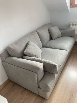 Sofá de dos plazas con un diseño moderno y confortable. Sus dimensiones lo hacen ideal para espacios medianos. - Medidas: 1,70 metros de ancho. - Tapicería de tela. - Color gris. No tiene ningún roce ni desperfecto. Ha estado en una segunda residencia, con uso ocasional. Disponible para retirar a 90 km de Móstoles, en la provincia de Toledo. O podemos trasladarlo nosotros cerca de Móstoles, consultar.