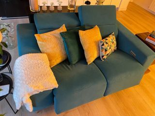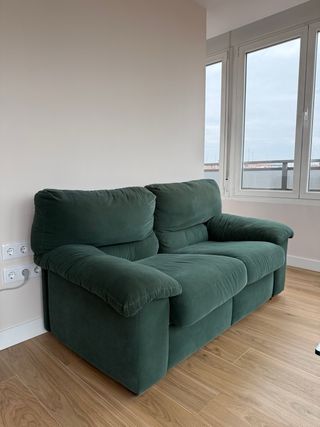 Sofá de dos plazas en color verde, con un diseño moderno y cómodo.urge la venta x espacio x eso el precio gracias - Tapicería de tela. - Estructura robusta.1,90