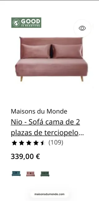 Sofá cama de dos plazas en color rosa, con un acabado de terciopelo. - Diseño elegante y moderno. - Tapicería suave al tacto.
