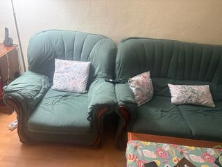 Solo venta en persona (población Zaragoza) Sofá 3 plazas y dos sillones clásicos,bien conservados. Con resortes de calidad ,madera maciza y suspensión de muelles. Medidas , sofá:1'88*81*77 Sillones 88*81*77 300€ el conjunto