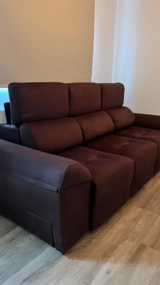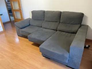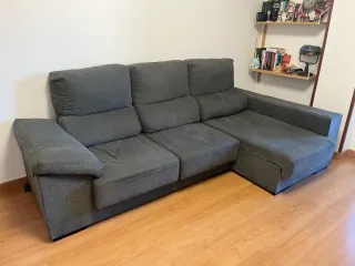 Sofá de tres plazas de 240 cm Puedes hacer la chaislonge en cualquiera de los dos lados, en función de donde te vaya mejor o este recogido. Los 3 asientos son extraíbles y los brazos tienen espacio para dejar cosas (ver fotos). El sofá tiene 1 año - Tres asientos amplios. - Respaldo alto para mayor confort. - Brazos acolchados.