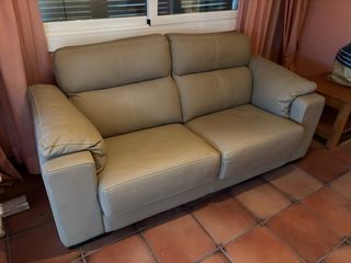 Cómodo sofá de dos y tres plazas en un elegante tono beige. - Tapicería de piel. - Diseño moderno y confortable. El De dos plazas esta en perfecto estado, el de tres plazas como se ve en la foto Precio individual Sofa 2 plazas 75 Sofa 3 plazas 25€