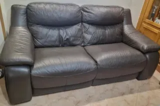 Dos sofás de tres y dos plazas. Totalmente desfundables para lavar sin problema. Reposacabezas reclinables. Buen estado. Urge venta. NEGOCIABLE. Habria que venir a recogerlo