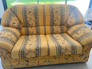 Sofa de dos plazas, ideal para espacios pequeños. Es cómodo y está en buen estado. Dos sofas iguales 80€ cada uno. - Tapicería de tela resistente. - Diseño clásico y elegante. - Perfecto para una casa o apartamento.