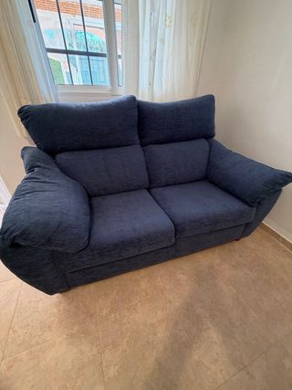 Sofás de dos y tres plazas en tonos azules y beige. Está en muy buen estado y es muy cómodo, ambos sofas se abren para hacerse “sofa cama” - Perfecto para espacios pequeños. - Tapizado de tela resistente. RECOGIDA EN GANDIA, MIRAMAR PLAYA