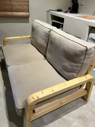 Sofá 2 plazas tela y madera
