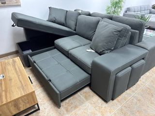Sofá Cama Microfibra Arrastre + Puffs Nuevo.