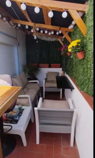 Conjunto de muebles de exterior compuesto por sofá con chaiselongue y mesa. Comprado en junio de 2025, se vende por mudanza. Está en perfecto estado. Precio original: 499€ El largo del chaislongue es 186cm, la otra parte mide 63cm.