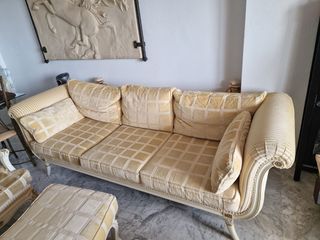 Se vende junto o separado, se recoge en benalmadena, Son un sofá clásico de madera tallada con tapicería a cuadros en tonos amarillos y blancos con su sillón y reposapiés. Ha sido usado pero se conserva bien, tiene apenas marcas de uso. (No son las medidas exactas, pero son tamaño estándar cómodo grande) Iphone samsung coche casa alquiler venta jardin ikea hogar telefono bmw