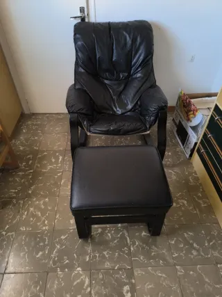 Tumbona de piel con reposapiés