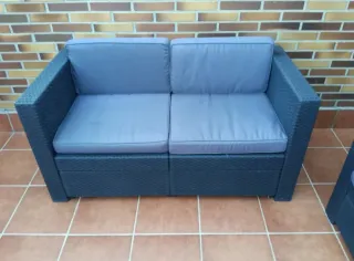 Conjunto de muebles de exterior de ratán sintético. Se regalan los cojines - Sofá de dos plazas. - Sillón individual. - Diseño moderno y resistente.