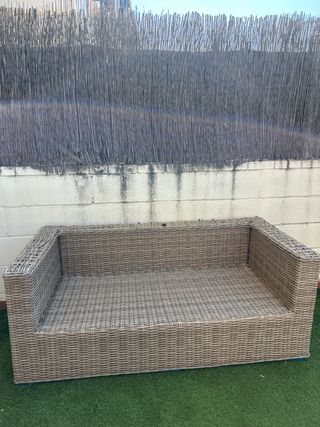 Sofá de exterior de mimbre, perfecto para tu terraza o jardín. Su diseño se adapta a cualquier espacio. - Estructura de plástico resistente. - Acabado en mimbre tejido.