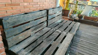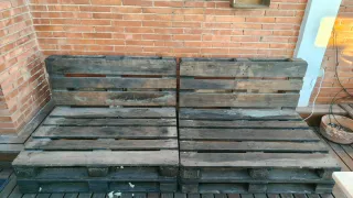 Conjunto de dos sofás hechos con palets europeos - Barniz náutico. - 2 años. - Regalo cojines (HAY QUE PONERLES FUNDAS) rellenos espuma doble densidad. - Entrego con respaldo desmontado para facilitar bajada por ascensor