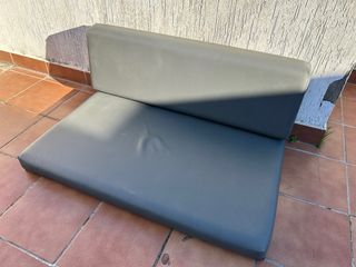 Cojines para sofá de espuma, desenfundable de color marrón chocolate hecho a medida para dos palets juntos, con su respaldo. Asiento 60x240 y respaldo 40 x240. LOS COJINES PEQUEÑOS NO SE VENDEN