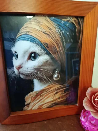 Precioso cuadro decorativo con temática de arte felino. - Buen Marco de madera. - Diseño de gatita con pañuelo y pendiente. Podría enviarlo 🎁 - Visítame para ver otros gatos y perros, tb vendo láminas sueltas Murano vajilla porcelana inglesa lladro figura escultura firma joyas Sofá cama sillon colchón arte plata Acero lampara retro vintage anillo Tous Pandora pendientes pulsera collar perlas mujer cartera piel chica vestido ropita Nancy Barby Ken princesa antigüedades reborn Muñeca antigua antiguo reloj libros Tebeo monedas colección chollo Oportunidad ocasión cuadros óleo