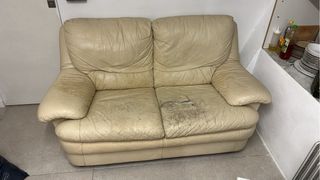 Cómodo sofá de dos plazas perfecto para cualquier salón. Su diseño clásico y elegante se adapta a diversos estilos de decoración. - Tapicería de piel. - Color beige neutro. - Medida 1,60 amplio - Medida 80 alto. Cómodo sofá de cuatro plazas perfecto para cualquier salón. Su diseño clásico y elegante se adapta a diversos estilos de decoración. - Tapicería de piel. - Color beige neutro. - Medida 2,14 amplio. - Medida 85 amplio. Precio pequeño 50 Precio grande 75 Si te llevas los dos 100 euros en total.