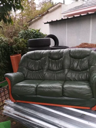 Conjunto de mobiliario de piel para sala de estar. - Sofá de tres plazas. - Dos sillones individuales. Aceptamos negociación. No hacemos envío. El comprador tendría que recogerlo en Alcobendas, Madrid.