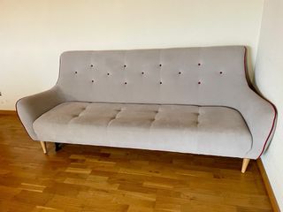 Cómodo sofá cama de tres plazas con un tacto suave y agradable. - Diseño moderno y elegante. - Patas de madera resistentes. Ypataspara extender cama por detrás escondidas con cremallera. Urge vender.