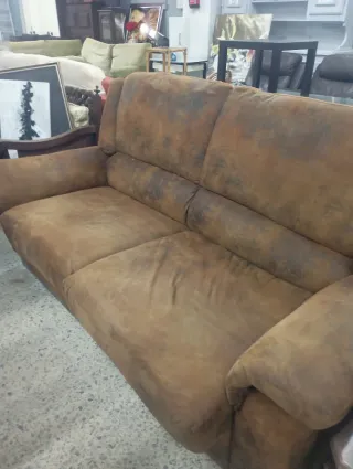 Sofá de tres plazas con un diseño moderno y confortable. Ideal para tu salón.se reclina la espalda de las tres piezas y los asientos pudiendo estar casi tumbado. - Tapicería de tela. - Estructura de madera. - Mecanismo reclinable.