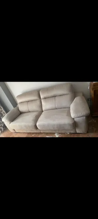 Sofá de tres plazas en perfecto estado. Su diseño moderno y su comodidad lo hacen ideal para cualquier salón. DISPONIBLE MAX 10 abril 2026 ( por reforma) - Tapicería de tela. - Dos cojines decorativos incluidos. - En perfecto estado , ha estado muy cuidado y con funda siempre . - Tiene 2 pequeños roces atrás de apoyarse en la pared (ver fotos) . - El interior , las correas y la tapiceria están en perfecto estado . - Es muy cómodo . - Se cambia por reforma en el salón Medias : largo 210cm aprox , fondo 95cm , altura del suelo a la sentada 45cm