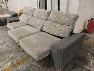 Sofá de tres plazas con chaise longue, ideal para tu salón. Su diseño moderno y cómodo se adapta a cualquier espacio. - Chaise longue en el lado izquierdo. - Tapicería de tela. - Patas metálicas plateadas. Medias del sofá: - Largo 2,75 cm - Profundidad: Lado izquierdo 1,50 m Lado derecho 1 m NO SE HACEN ENVÍOS, recogida en domicilio