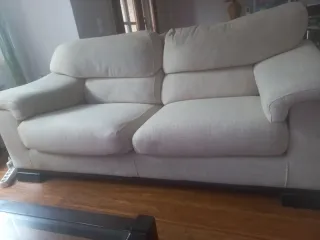 Vendo dos sofás uno de tres plazas y otro de dos de color beige. Están en buen estado, los vendo porque he comprado unos nuevos. La única condición es venirlos a buscar. - Tapicería de tela. - Diseño moderno y elegante.