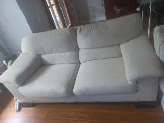 Sofá de tres plazas en perfecto estado. - Tapicería de tela. - Color blanco roto muy elegante. - Asientos extraíbles tal cual se ve en la foto. - 2'50 * 1 metro - Con altura suficiente para pasar un aspirador, incluso la Roomba.
