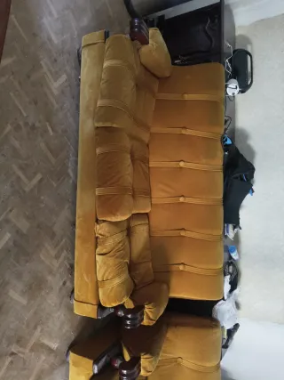 Sofá y 2 sillones de terciopelo