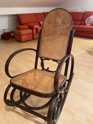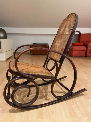 Mecedora de mimbre y madera