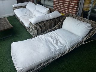Sofá de mimbre con cojines