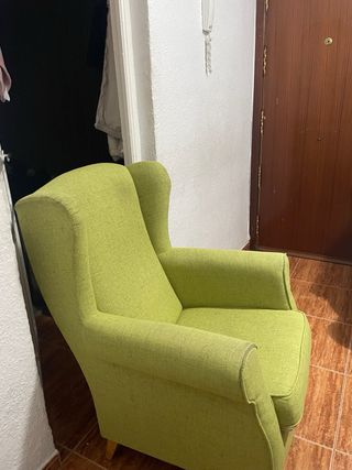 Cómodo sillón tapizado en tela, perfecto para cualquier rincón del hogar. - Diseño clásico con respaldo alto. - Patas de madera robustas. - Vienen dos sillones, cada uno vale 80€.