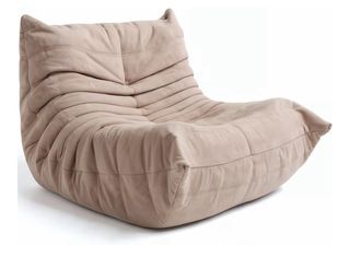 Conjunto de chauffeuse y pouf Togo en Alcantara color camel. Un diseño icónico y muy cómodo de la marca Ligne Roset. - Tapicería suave y agradable al tacto. - Estructura modular y adaptable. - Relleno de espuma de alta densidad.