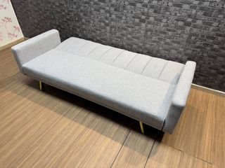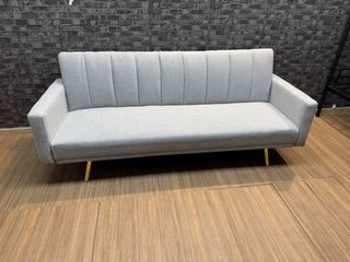 Sofá cama con mecanismo clic-clac, muy fácil y rápido de abrir. Patas metálicas doradas para un toque de distinción. Tapizado en gris. Es completamente nuevo. Se entrega en su embalaje original. Ideal para salones o estudios. 📲 639*116*436 - Judith ☎️ ✅Pagos y envios a contra - rembolso ✅ ✅Envios de 1 a 4 dias. ✅ ✅Envio de factura. ✅ ✅Garantia de 2 años.✅ ✅Productos completamente Nuevos ✅ ☎️ Tienes dudas? , no dudes en comunicarte con nosotros, atendemos 24HRS.☎️