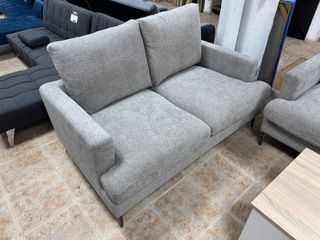Sofá de dos plazas en buen estado, con un diseño moderno y elegante. - Tapicería de tela. - Tonos neutros que combinan fácilmente.