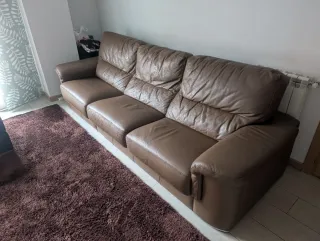 Sofá de la marca española Pedro Ortiz. Cómo nuevo, la piel es de alta calidad y no tiene ninguna marca. Confortable en sentada, te recoge toda la espalda y cuello y la sentada permanece como el primer día, mejor ver y probar. Piel de alta calidad, para toda la vida y de tacto agradable. Con medidas de 2,83 cm de ancho (hasta 5 plazas) , 96 cm de profundidad (que son 140cm si sacas el asiento y 94 cm de alto. Se pueden sacar los 3 asientos como se ve en la foto para hacer chaiselongue,o cama. Y se pueden dividir en 2 si quieres hacer un 3+2 (178+105) Te puedo hacer el porte si lo necesitas. Puff negro a juego de 63x74 de regalo