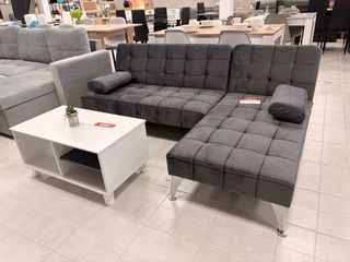 Sofa convertible en cama y reversible, tiene un sistema de apertura tipo clic clac. Puedes elegir el lado de la chaise que mas le guste por tener 2 modulos independientes. Disponible en negro, gris o azul tercipelo, gris tela o negro polipiel Facil montaje Garantia de 3 años