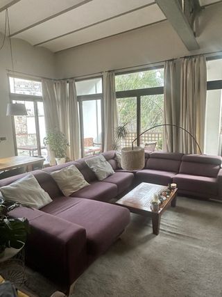 Sofá modular de tela en color morado, con estructura de madera. 4,20 x 2,60 x 1,80 - Diseño moderno y confortable. - Tapicería suave al tacto. En inmejorable estado Muy poco uso Precio nuevo 2.300