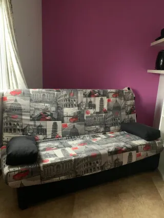 Sofá-cama en excelente estado, casi sin uso. Su diseño moderno combina con cualquier decoración. - Tapicería de tela.