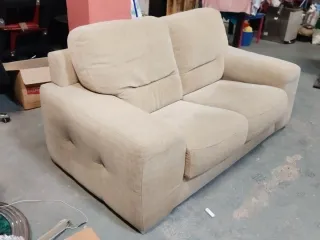 Sofá de tres plazas en color beige. - Tapicería de tejido antimanchas . - Diseño moderno y cómodo. Medidas cama : ancho del colchon 140 cm . Hay que recogerlo en el domicilio.