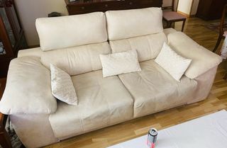 🛋️ Sofá blanco de 2 plazas – polipiel, fácil limpieza Vendo sofá blanco de dos plazas, compacto y cómodo, ideal para pisos pequeños, oficinas, despachos, salas de espera o incluso un local. 📏 Ancho aproximado: unos 120 cm (lo mediré exacto si te interesa). 🧼 Material: polipiel / cuero sintético, se limpia genial con un paño húmedo. 🎨 Color: blanco. El sofá está usado, con las típicas marcas del uso (se aprecian en las fotos), pero sigue siendo totalmente funcional y cómodo. No está hundido ni roto, estructura firme. Perfecto si buscas algo práctico, que no dé miedo usar y que cumpla sin gastarte mucho. 📦 Recogida en persona