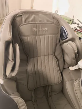 Sillón de masaje con un diseño moderno y confortable. - Tapicería en tonos beige y marrón. - Materiales de alta calidad para mayor durabilidad.