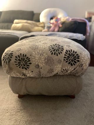 Puede utilizarse como puff o reposapiés. Tela fuerte de tapicería.