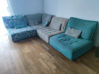 Este sofá modular de Fama ofrece un diseño moderno y cómodo para tu salón. Sus piezas se pueden reconfigurar para adaptarse a tu espacio. Comprado en 2015, los módulos hacen una medida de 90x90 cm, y 30 cm de altura desde el suelo al asiento. Las partes del respaldo son desenfundables y lavables, asi como los cojines. Puedo venderlo junto o por módulos, negociable. - Tapicería de tela. - Combinación de colores azul y turquesa.